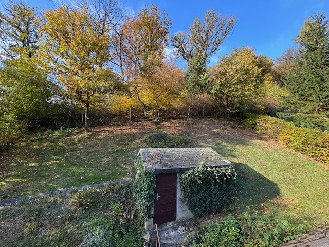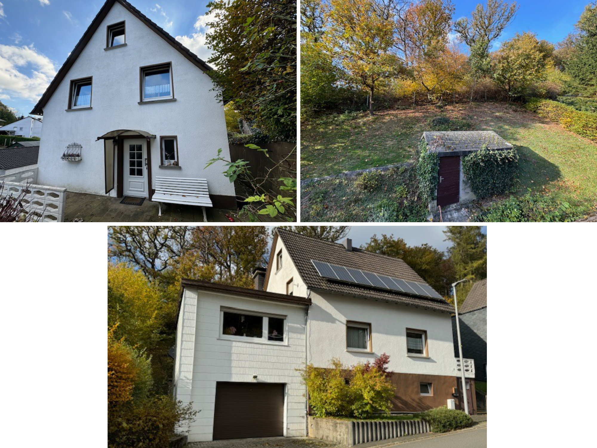 Das Anwesen befindet sich in ruhiger Orts- und Waldrandlage, an einer Anliegerstraße ohne Durchgangsverkehr. Das hangige Grundstück ist teilweise eingezäunt und bepflanzt. Neben und hinterm Haus ist jeweils eine Terrasse angelegt, die Zuwegung vorm Haus ist mit Verbundsteinen gepflastert.