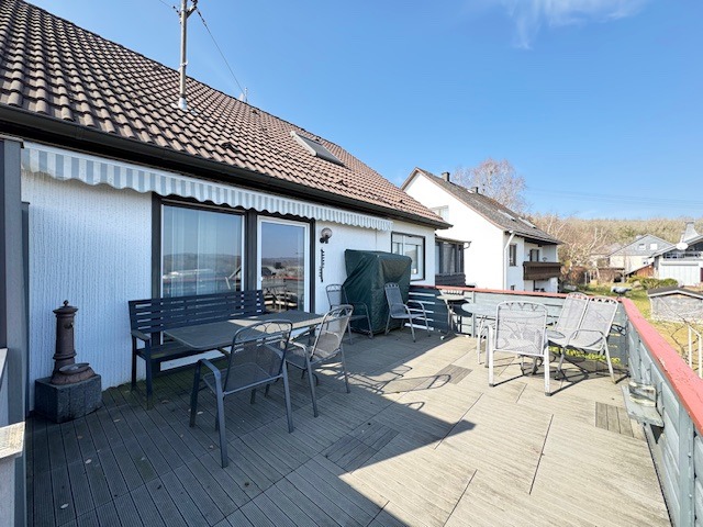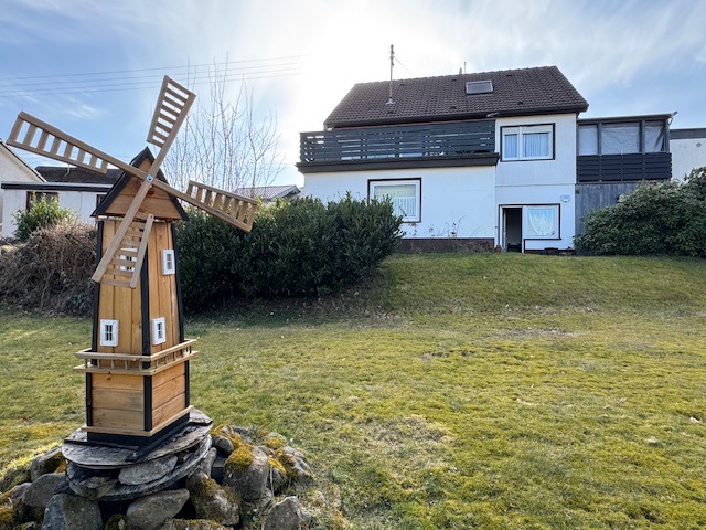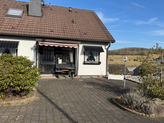 Das Anwesen befindet sich in einem gepflegten Wohngebiet am Ortsrand, in sonniger und ruhiger Lage. Sie wohnen hier an einer reinen Anliegerstraße ohne Durchgangsverkehr (Sackgasse), und von der Dachterrasse hinterm Haus (mit elektrischer Markise) haben Sie eine tolle, unverbaubare Fernsicht. Darüberhinaus gibt es eine weitere (2020 überdachte) Terrasse zum Verweilen. Das Areal ist teilweise mit Rasen eingesät sowie vielfältig bepflanzt. Die Zuwege sind mit Verbundsteinen und Rasengittersteinen gepflastert.