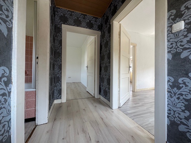 OG: Flur, Badezimmer mit Wanne, 3 Schlafzimmer (davon 1 Durchgangszimmer);