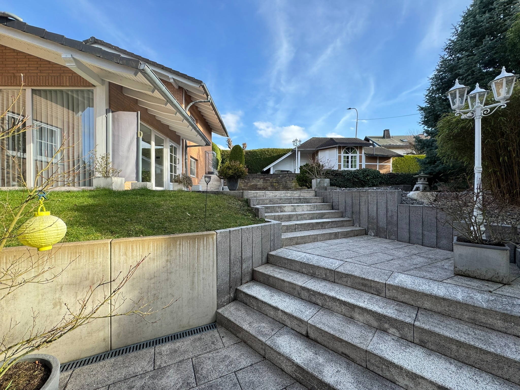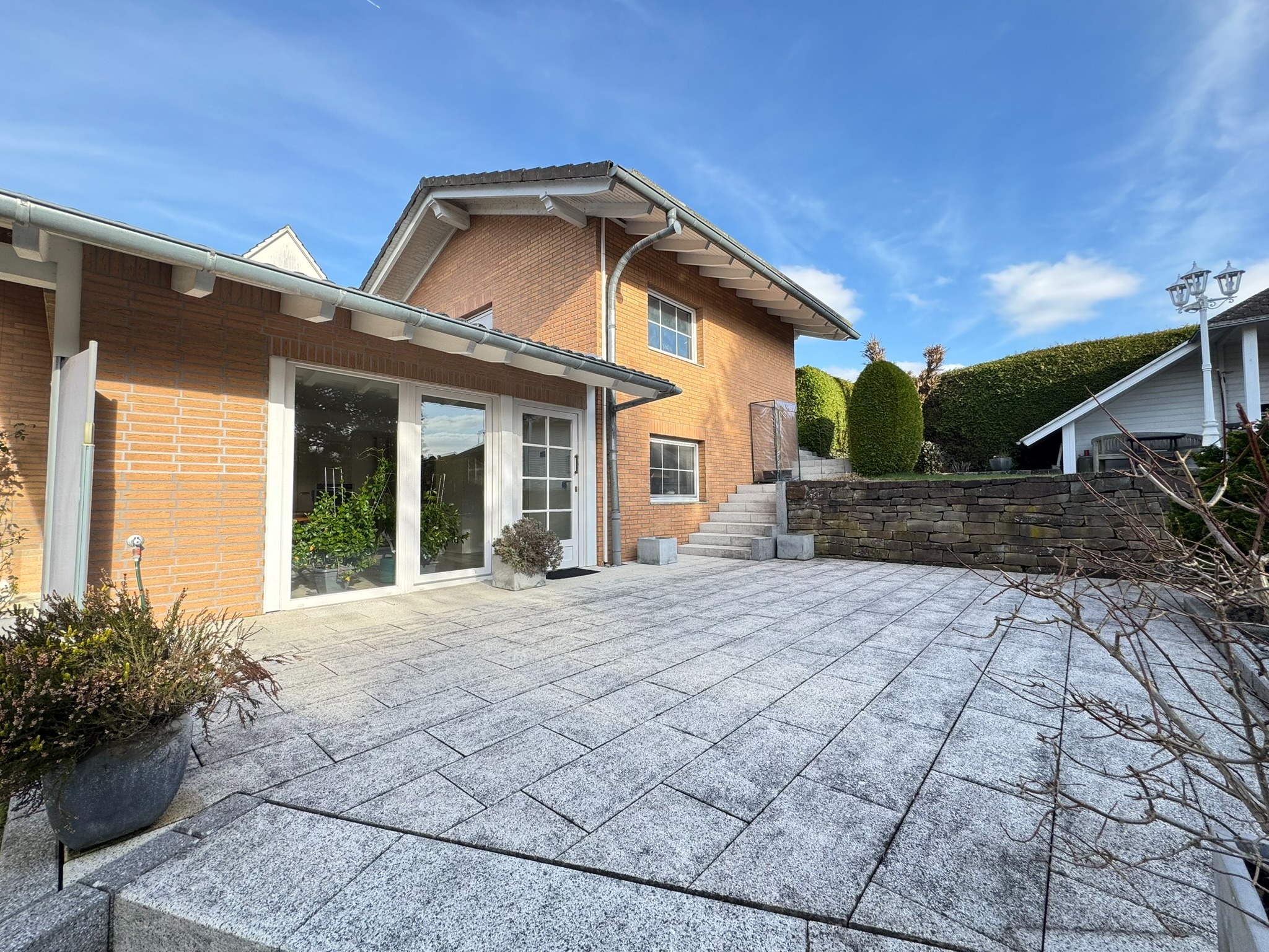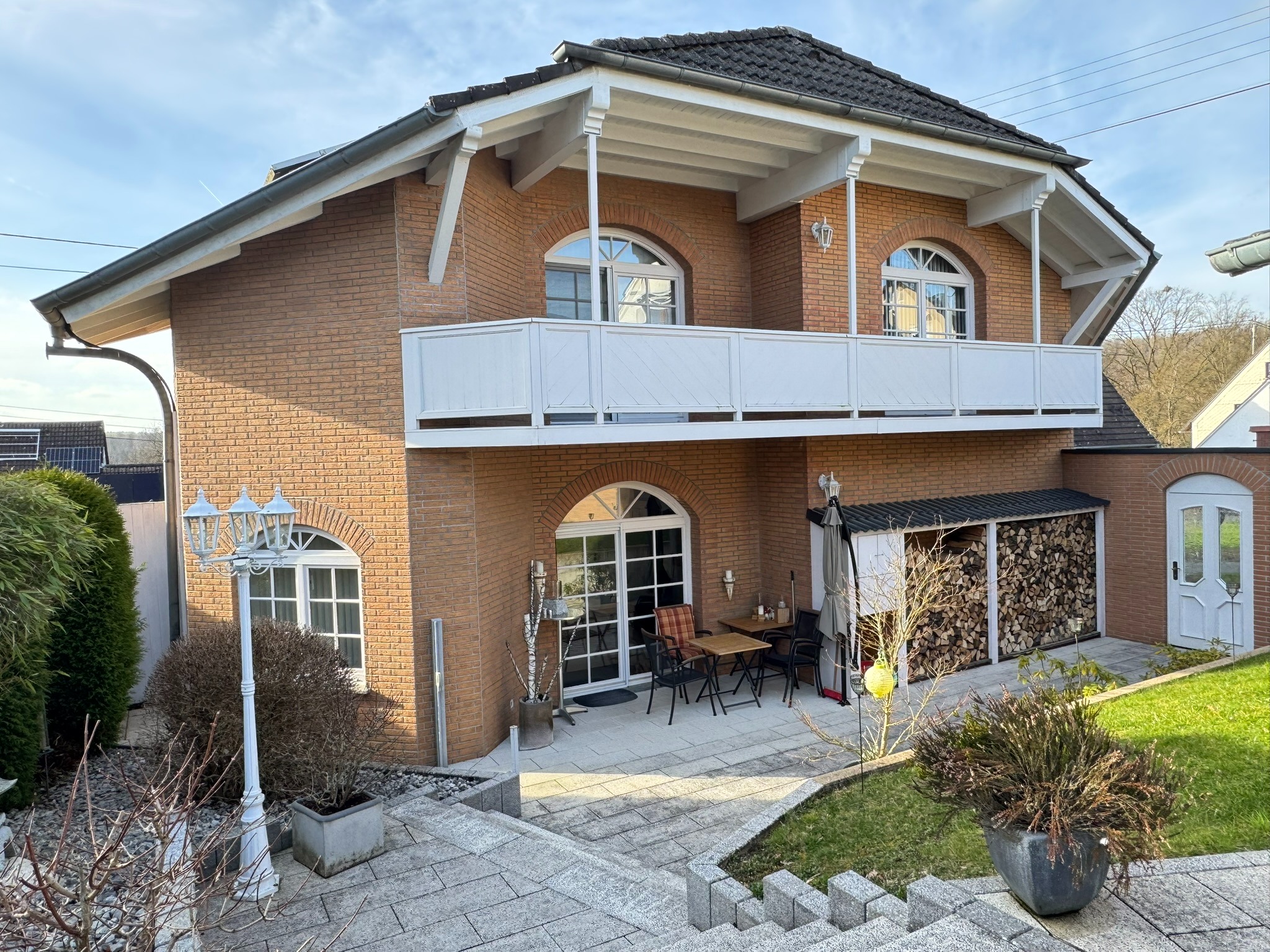 Diese besondere Immobilie wurde 1984 in Massivbauweise errichtet und ist mit einer Klinkerfassade versehen. Ein zusätzlicher Anbau erfolgte im Jahr 1993, sodass hier insgesamt ca. 200 m² Wohnfläche zur Verfügung stehen. Das Haus besticht durch eine großzügige Raumaufteilung und eine hochwertige, moderne Ausstattung. Das Dach ist mit Pfannen eingedeckt. Die Beheizung erfolgt über eine Ölzentralheizung (von 2014); zudem sorgt ein Tunnelkamin (von ca. 2015) als Raumteiler im Küchen/Wohn-Essbereich für eine behagliche Atmosphäre. Fenster in Kunststoff mit Sprossen und Isolierverglasung sowie Rollläden; Haustür in Aluminium; Bodenbelag im Wohnbereich mit Eiche-Parkett.