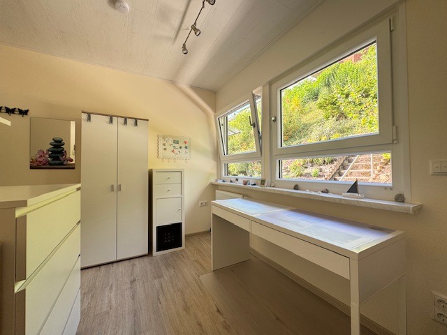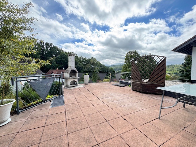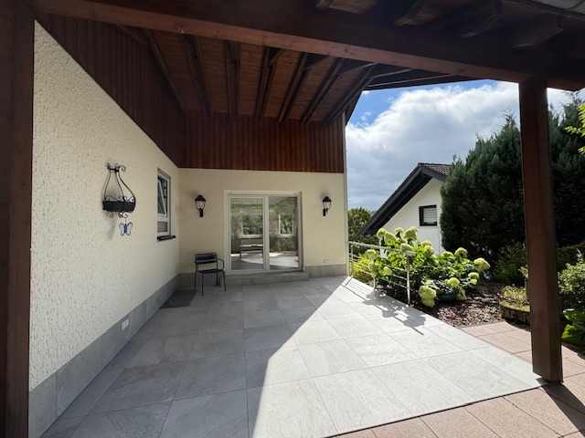 Das Anwesen befindet sich in sonniger und ruhiger Südhanglage am Stadtrand, an einer Anliegerstraße ohne Durchgangsverkehr (Sackgasse). Das Areal ist terrassenförmig angelegt, vielfältig bepflanzt und eingezäunt, und bietet eine unverbaubare Fernsicht. Das Haus verfügt über 2 großzügige Terrassen, eine davon überdacht, sowie einen Balkon mit elkektrischer Markise.