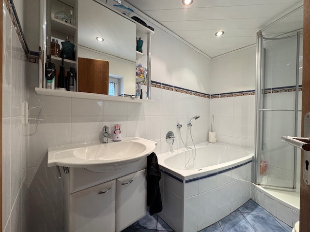 Im Laufe der Jahre fanden diverse Renovierungs- und Modernisierungsmaßnahmen im EG statt: in 2020 neues Gäste-WC; 2021 Böden (Vinyl), Türen, Decken, tlw. Heizkörper; 2022 elektrische Markise mit Funk, Bad mit behindertengerechter Dusche; neue Gasheizung mit Solarthermie. Die Kunststofffenster mit Isolierverglasung und Rollläden sind von 2014.